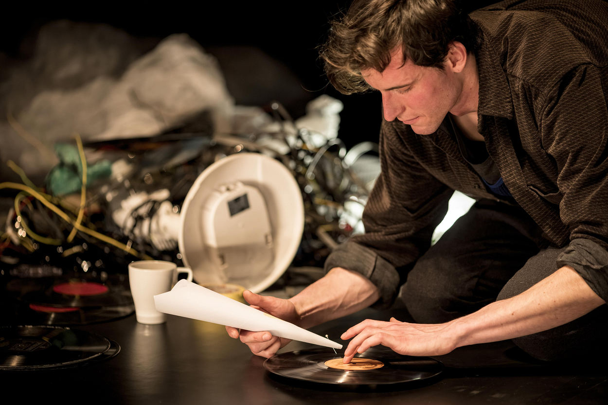 V popisu díla jsem si přečetla, že Lukas Bliss se při tvorbě své inscenace volně inspiroval Beckettovou poetikou a Tichem Johna Cage. Jeho cílem bylo vytvořit fyzickou báseň zamýšlející se nad rolí archiválií, archivního materiálu a samotné postavy archiváře. A opravdu každý moment představení pro mě byl dobrodružným objevováním světa archiváře a materiálu, který ho obklopuje, a který je vlastně částí jeho samotného. Tím, že bylo využito předmětů běžných a normálních a všude se válely kusy magnetofonových pásek a zapomenuté rukavice propletené s dráty, mi tak celá výtvarná stránka díla připomněla film Kuky se vrací.