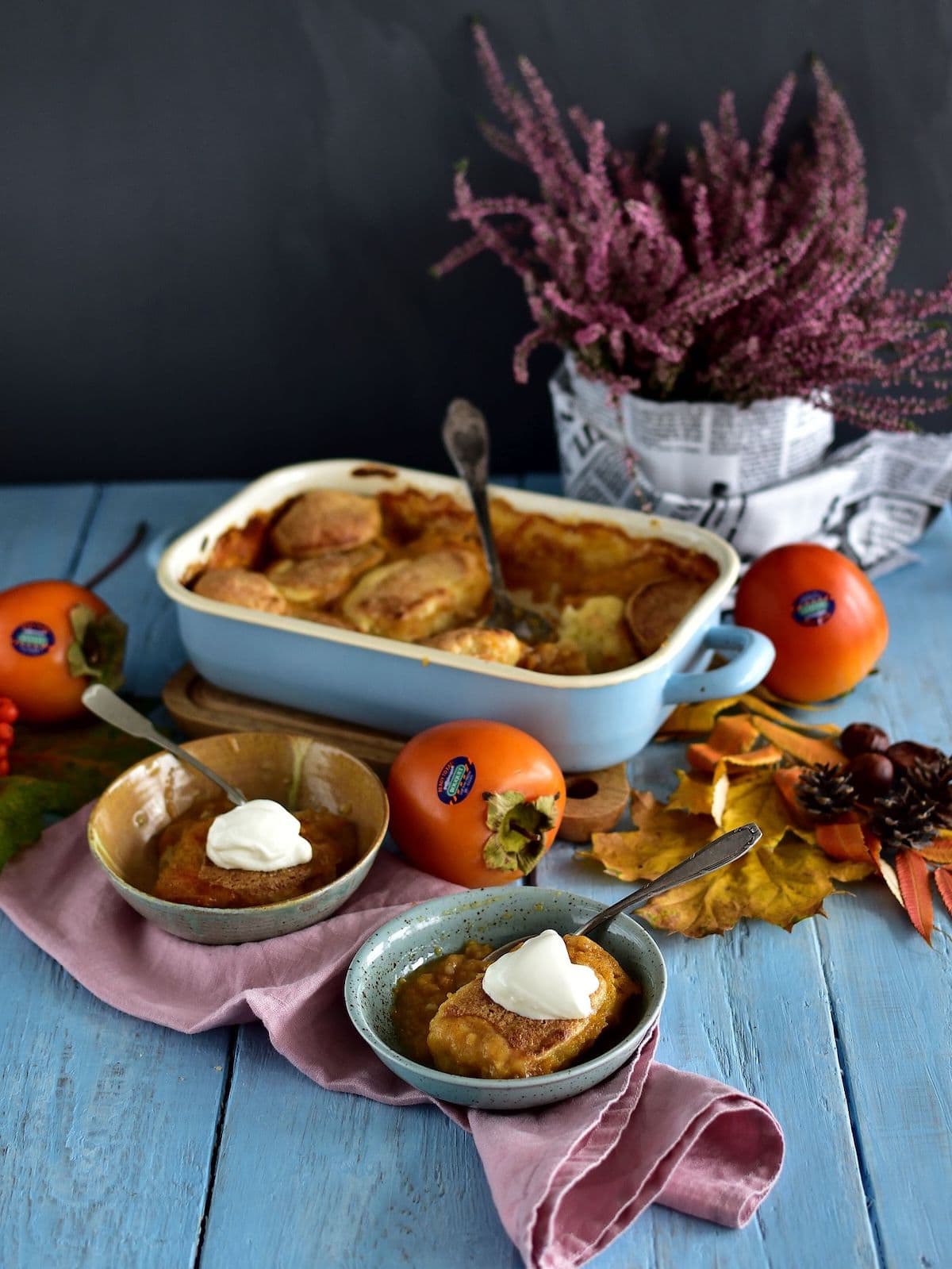 Pokud hledáte zpestření jídelníčku, připravte si dva následující zajímavé recepty. Buchtičky s kaki pyré se stanou oblíbenou volbou například ke kávě, nebo jako sladká svačinka. Podávat je můžete ještě teplé nebo v pokojové teplotě, jejich sladká chuť vás nezklame. Zapečený chléb s kozím sýrem a kaki nabízí originální spojení, které příjemně překvapí každého gurmána. Hodí se jako rychlá večeře, nebo jako svěží náhrada například za chlebíčky.