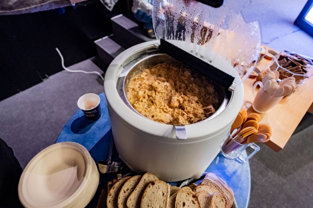 Jediné, co se nepovedlo, bylo počasí. Stejně jak tomu bylo po celý říjen i jeho poslední týden doprovázela zima, vítr a občasný déšť. To vše sice k Jihlavě tak nějak patří, ale letos to chtělo opravdu hodně vrstev. Naštěstí se dalo schovat do festivalových kaváren nebo k jednomu ze stánků s jídlem – palačinka s pestem, sušenými rajčaty a sýrem byla opravdu vynikající.