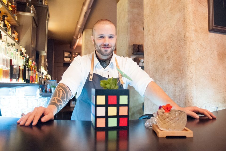 Já se vždy u soutěží snažím vymyslet něco, o čem mám pocit, že by nenapadlo nikoho jiného. Třeba u Retro-Disco-Future challenge jsem byl přesvědčen, že většina soutěžících u disco drinku použije disco kouli. A já přišel s Rubikovou kostkou, protože ta v té době 70. a 80. let byla nejprodávanějším artiklem na světě. Stejně jsem pojal i drink, neměl jsem žádné homemade ingredience, ale vše dobové, barevné sirupy, likéry, na což ta porota koukala dost zvláštně. Pointa všeho byla, že ten drink je jako Rubikova kostka – dokud to neposkládáš dohromady, nedává to smysl. Nebo pro kolo Around the World bylo úkolem popsat jedním drinkem vlastní zemi a druhým Jihoafrickou republiku. Zde jsem se inspiroval první botanickou zahradou na světě, která je shodou okolností v Kapském městě. Tím jsem měl příběh sám o sobě. Drink jsem postavil na ginu, který je už sám o sobě florální, a zároveň je gin spjat s Británií, která v Africe měla velký vliv. Servíroval jsem jej uzavřený ve skleničce, aby připomínala skleník. Ozdoba byla z jedlých květin a celé jsem to podpořil levandulovou vonnou tyčinkou.