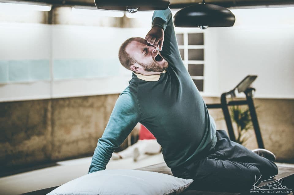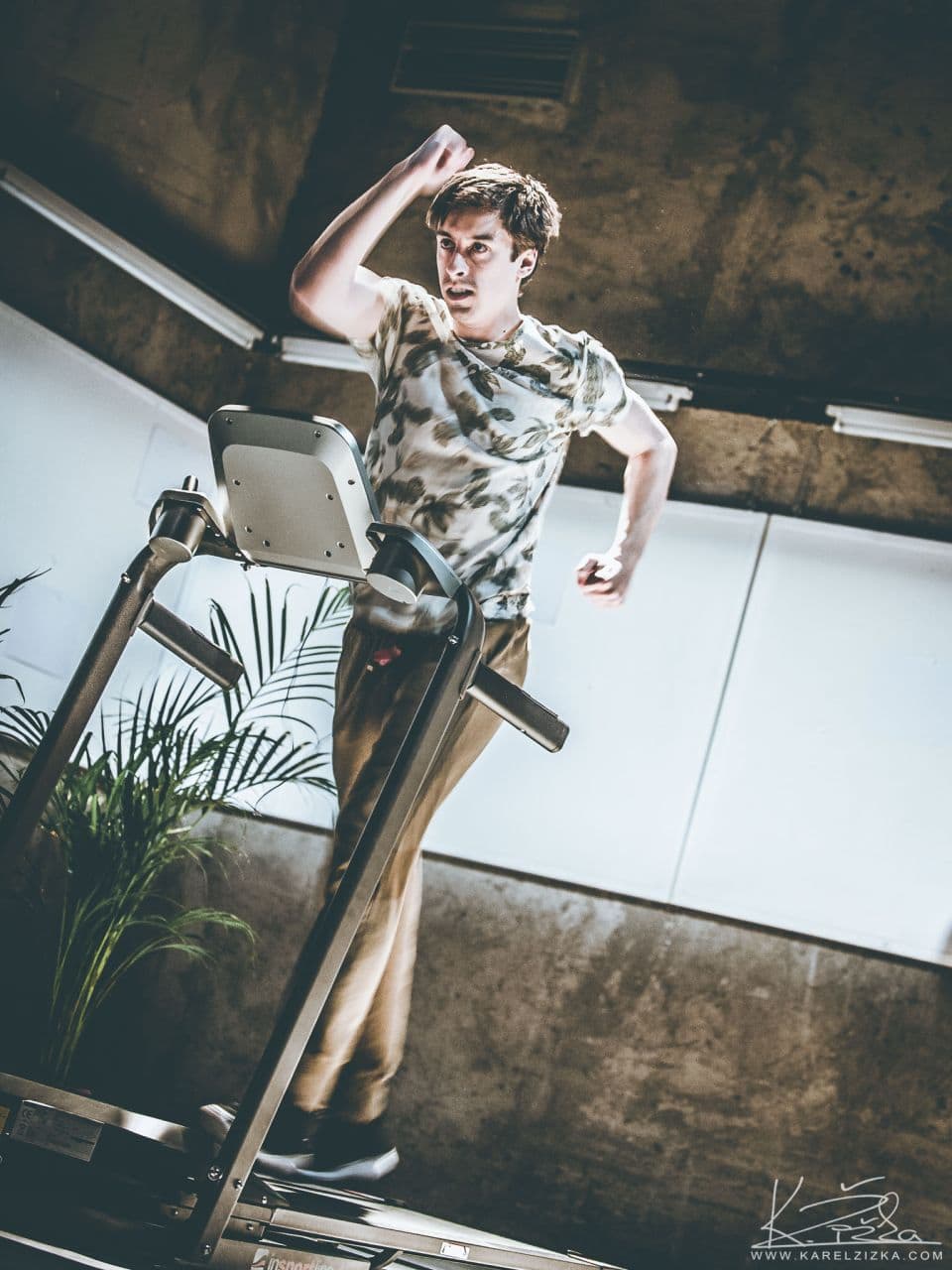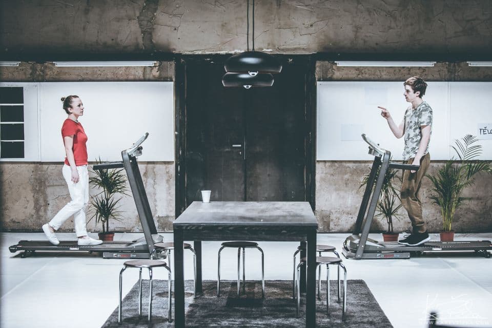 Jednotlivé poruchy pacientů jsou pro potřeby inscenace dovedeny ad absurdum, ať už se jedná o délku bdělosti pacientky č. 2 či důvody, pro než do spánku náhle upadá pacient č. 1. Je to přehnané, zároveň však humorné a herci si tím připravují půdu pro následný vtip. Obdivuhodná je také fyzická zdatnost herců, jelikož značnou část představení proběhají na běžeckém pásu. Ten je samozřejmě součástí klinických výzkumů, stejně jako okolní stěny s nástěnkami a grafy a tabulkami zaznamenávajícími spánek pacientů. Zajímavé je, že scénografie je vcelku propracovaná, u inscenací v alternativních prostorech bývá spíše zvykem na scénu rezignovat a vypomoci si jen s několika rekvizitami.