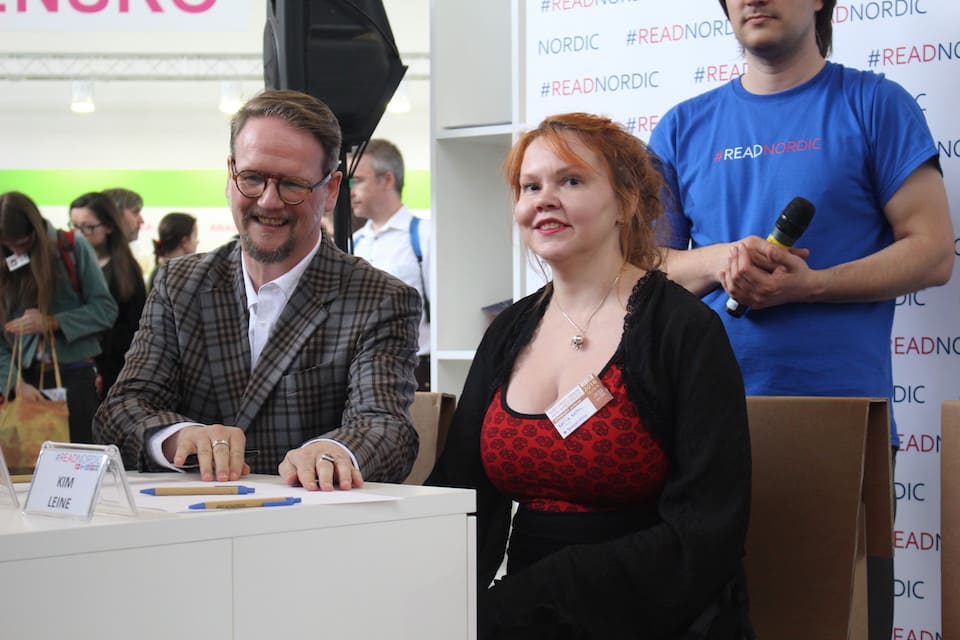 Na oné židličce jsem čekala na jedny z hlavních hvězd Světa knihy, kterými byli spisovatelé Sjón (Island), Katja Kettu (Finsko) a Kim Leine (Nor žijící v Dánsku). Perfektně oblečený Sjón dorazil jako první. Kromě historických próz, které jsou společným jmenovatelem všech tří autorů, píše také texty zpěvačce Björk. Extravagantní autorka Porodní báby, která jako by vypadla z šatníku herečky Helen Bonham Carter, dorazila hned v závěsu a už se jen čekalo na Proroka z fjordu Věčnosti Kima Leineho.