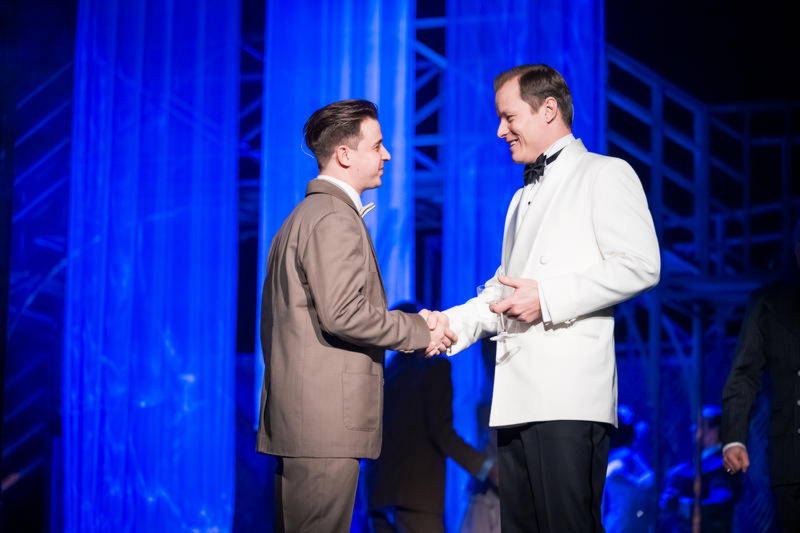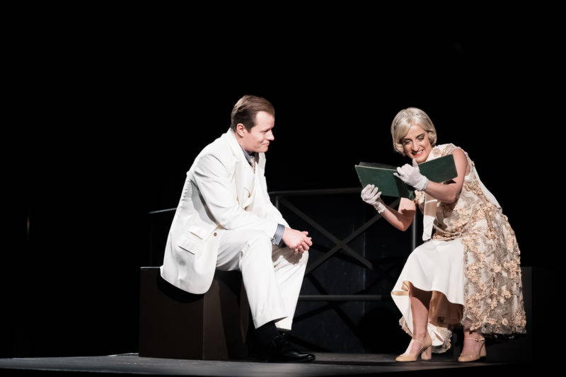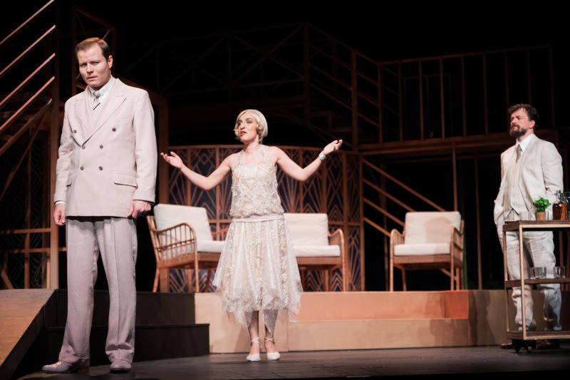 Scéna využívá více úrovní a dává tak příležitost k pohybu, což je důležité třeba při tanečních vstupech, které dávají inscenaci potřebný „jazzový“ rozměr. Zároveň však také platí, že scénické pojetí je vcelku střídmé a nenavozuje pocit honosných sídel společenské smetánky, v nichž se děj převážně odehrává.