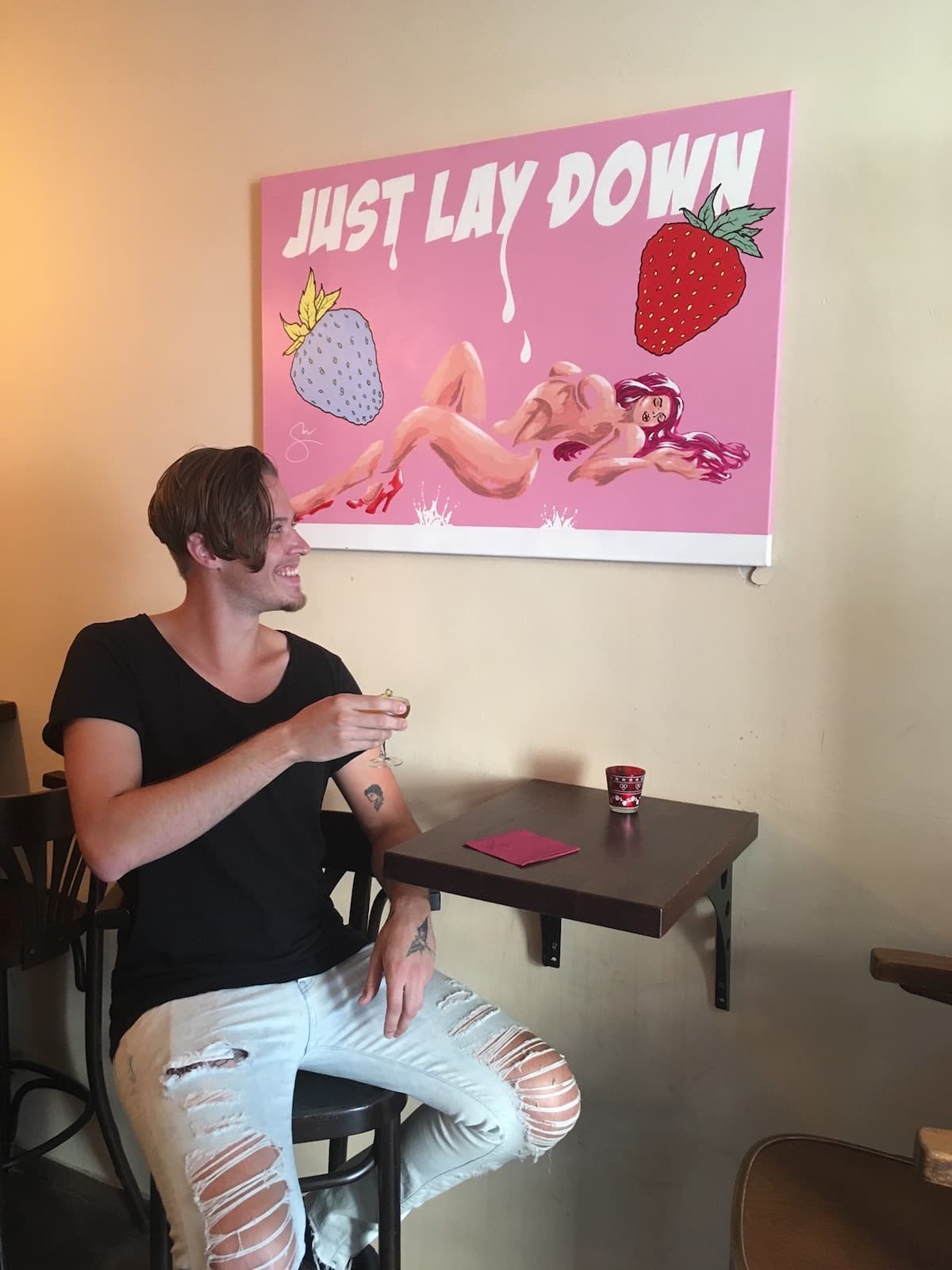 V Josie nyní probíhá jeho třetí výstava s názvem Passionfruit, druhé dvě se uskutečnily v první polovině roku ve Vanity Cafe & Cocktail Baru, další pak přímo v Meet Artu.