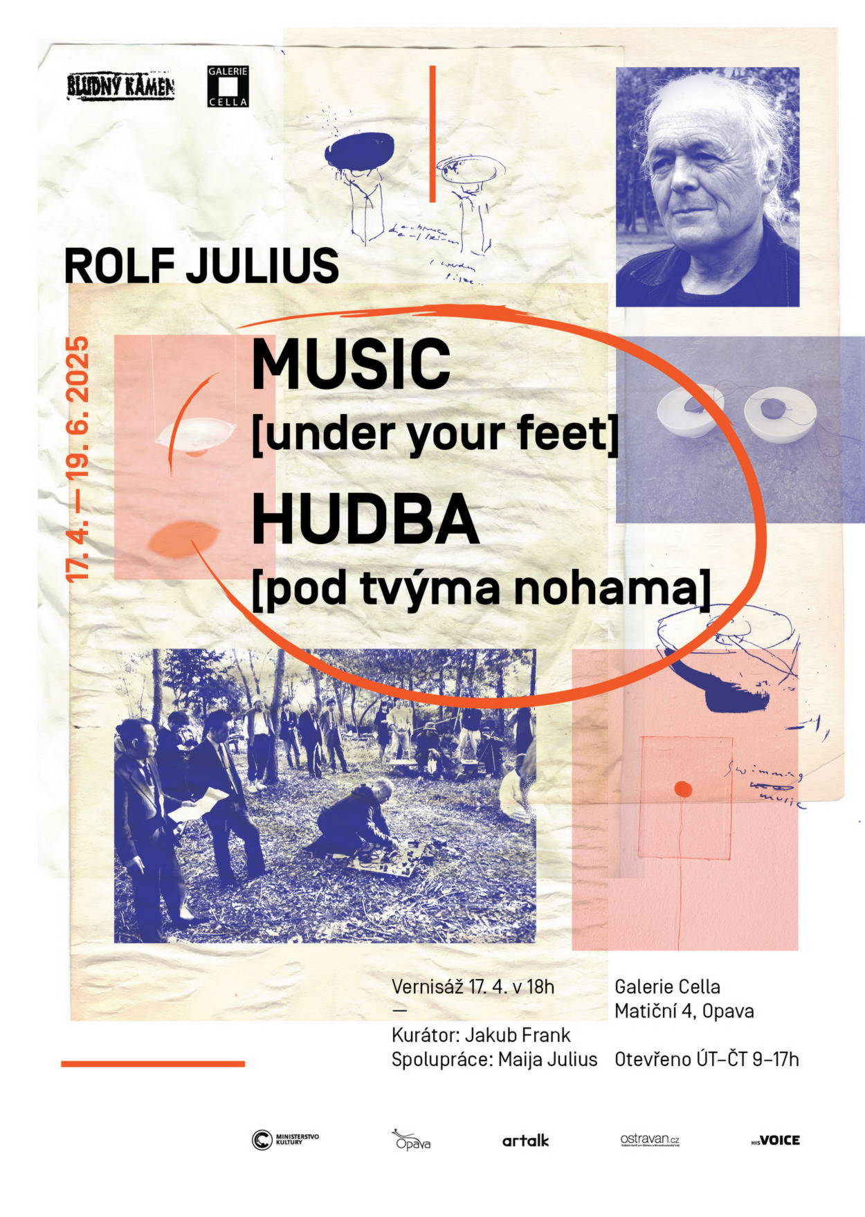 Bludný kámen pokračuje ve své výstavní sérii věnované průkopníkům evropského zvukového umění. V opavské Galerii Cella představí dílo německého umělce Rolfa Juliuse, který od 80. let 20. století zásadním způsobem přetvořil vnímání vztahu mezi obrazem a zvukem. Výstava Hudba [pod tvýma nohama] je vůbec první samostatnou prezentací jeho tvorby v České republice.